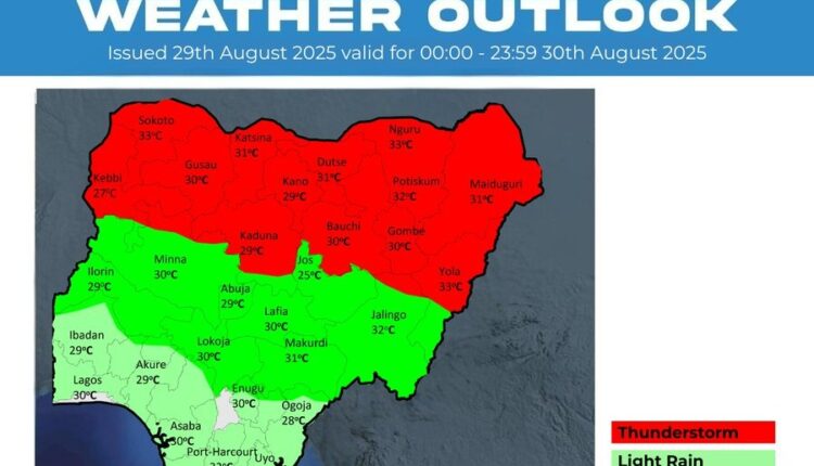 The Nigerian Meteorological Agency (NiMet) has issued a weather forecast for Saturday, 30th August 2025, predicting thunderstorms, moderate rains, and cloudy conditions across different regions of the country.